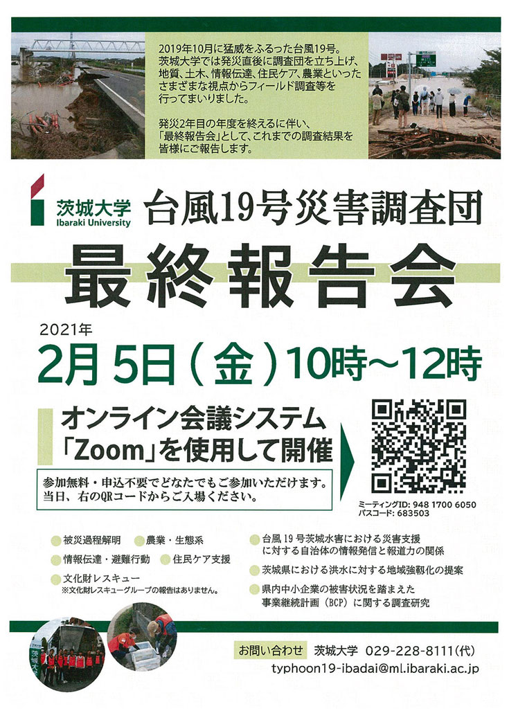 2021/02/10 令和3年2月5日(金)茨城大学 台風19号災害調査団最終報告会へ参加いたしました。(オンライン) 令和3年2月5日(金)茨城大学 台風19号災害調査団最終報告会へ参加いたしました。(オンライン) tagPlaceholderカテゴリ: